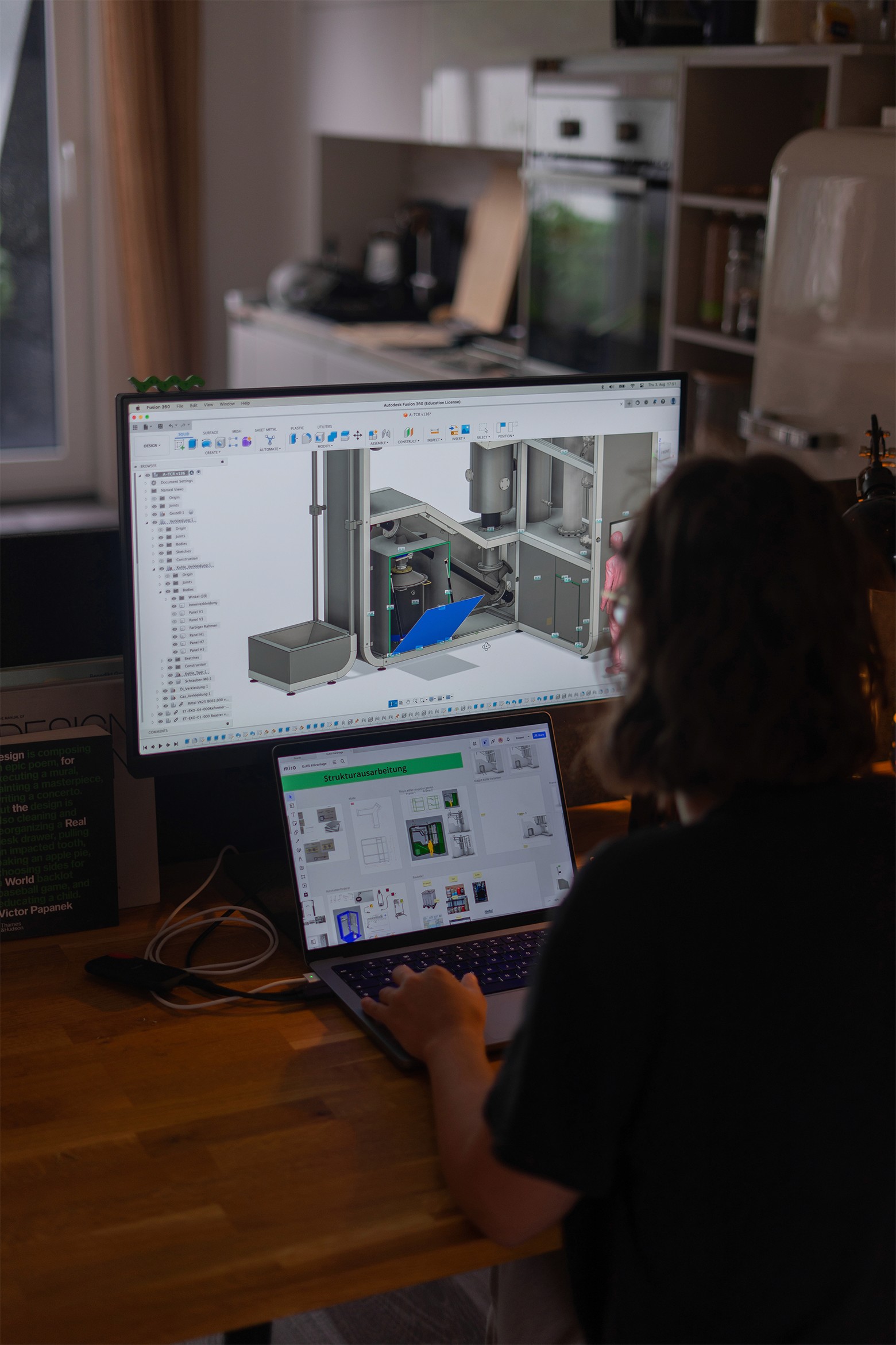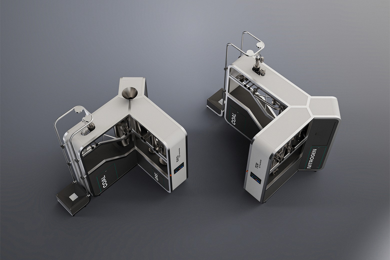 The final concept presents a scalable solution that can accommodate technical parts of varying sizes. Our focus lay on simplifying the everyday use without disregarding the underlying complex technology. To ensure a seamless user experience, the final design has a clear structure, separating the technical components into warm and cold, and highlighting the input and output areas.